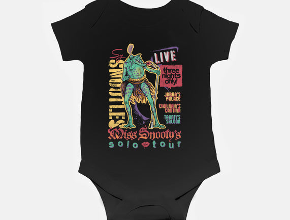 Miss Snooty's Solo Tour is a great Baby Basic Onesie from our amazing collection of custom fandom inspired products. This product was designed by Wheels, who is part of our exclusive pop-culture inspired artist community.