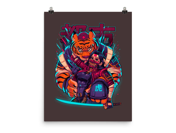 Cyber Samurai Tiger is a great None Matte Poster from our amazing collection of custom fandom inspired products. This product was designed by Bruno Mota, who is part of our exclusive pop-culture inspired artist community.