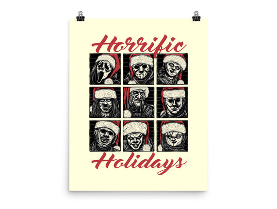 Horrific Holidays is a great None Matte Poster from our amazing collection of custom fandom inspired products. This product was designed by momma_gorilla, who is part of our exclusive pop-culture inspired artist community.