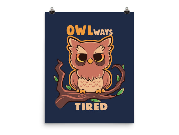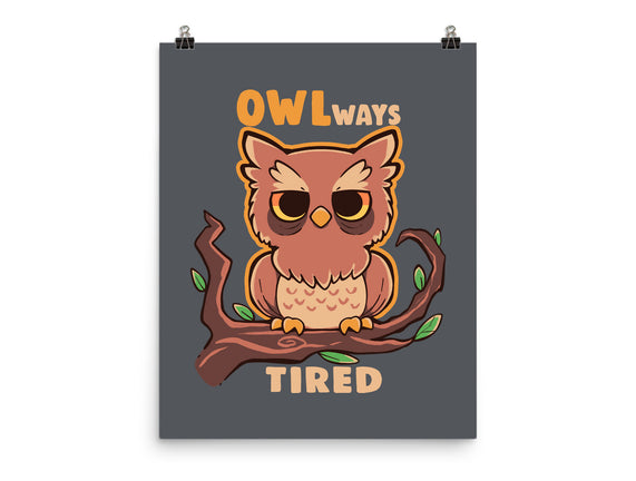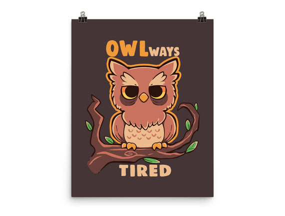 Owlways Tired is a great None Matte Poster from our amazing collection of custom fandom inspired products. This product was designed by TechraNova, who is part of our exclusive pop-culture inspired artist community.