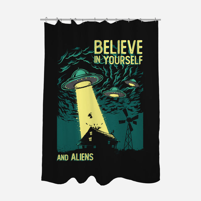 Yourself And Aliens is a great None Polyester Shower Curtain from our amazing collection of custom fandom inspired products. This product was designed by Gleydson Barboza, who is part of our exclusive pop-culture inspired artist community.