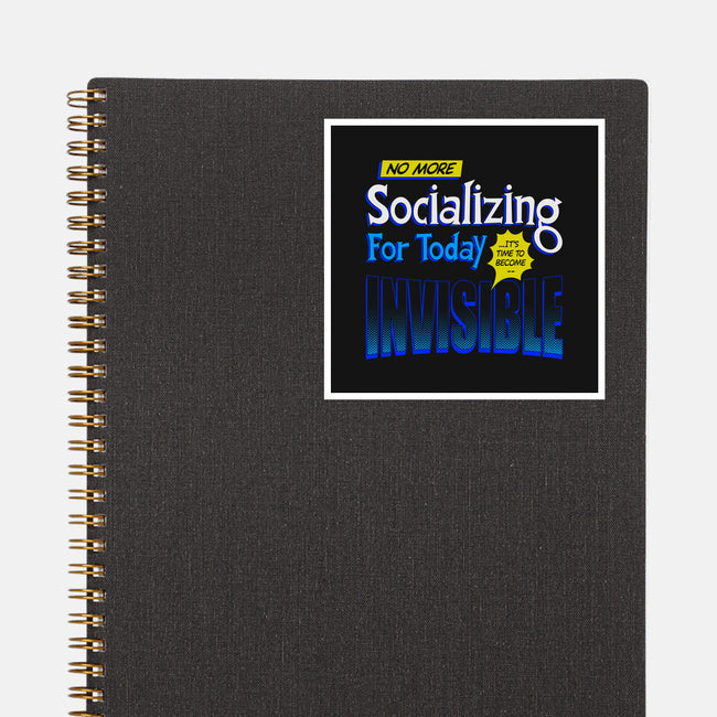 No More Socializing is a great None Glossy Sticker from our amazing collection of custom fandom inspired products. This product was designed by Getsousa!, who is part of our exclusive pop-culture inspired artist community.