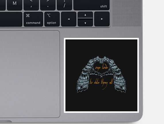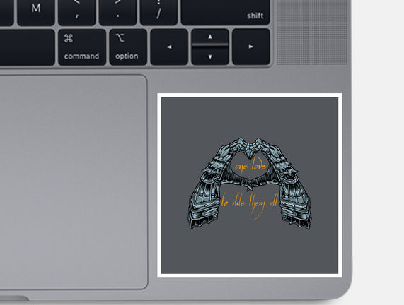 One Love To Rule Them All is a great None Glossy Sticker from our amazing collection of custom fandom inspired products. This product was designed by momma_gorilla, who is part of our exclusive pop-culture inspired artist community.