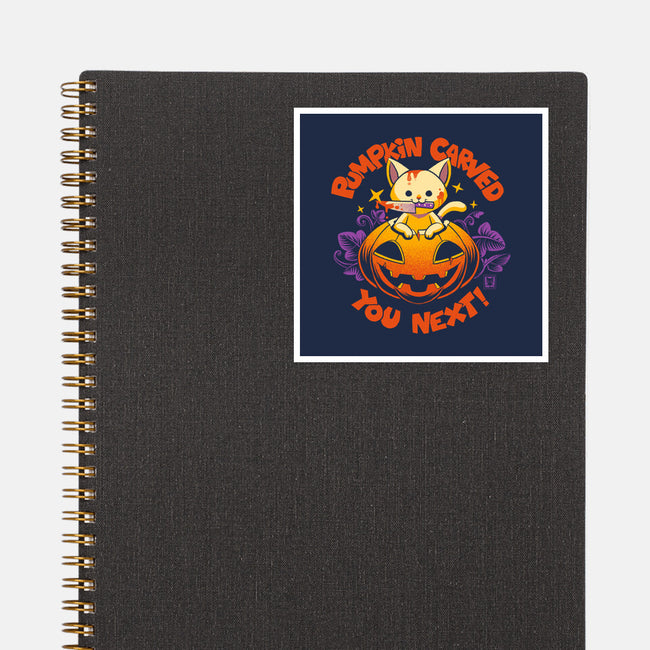 Pumpkin Carved You Next is a great None Glossy Sticker from our amazing collection of custom fandom inspired products. This product was designed by worlddominationforcats, who is part of our exclusive pop-culture inspired artist community.
