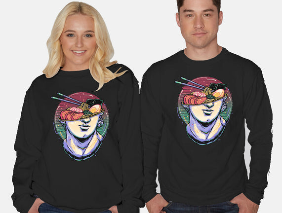 Ramen On My Mind is a great Unisex Crew Neck Sweatshirt from our amazing collection of custom fandom inspired products. This product was designed by glitchygorilla, who is part of our exclusive pop-culture inspired artist community.