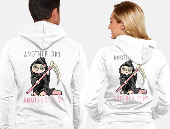 Another Day Another Slay is a great Unisex Zip-Up Sweatshirt from our amazing collection of custom fandom inspired products. This product was designed by glitchygorilla, who is part of our exclusive pop-culture inspired artist community.