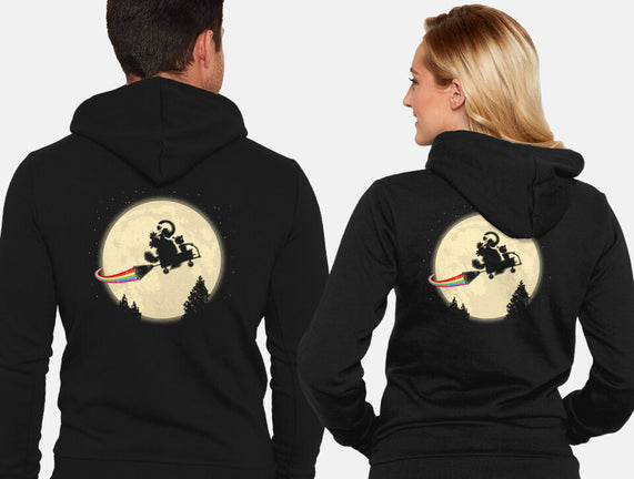 50% cotton, 50% polyester. Classic fit. Metal zipper and pouch pockets. Artwork printed on the back. Wash inside-out in cold water and hang on tumble dry on low heat to maximize the life of your sweatshirt.