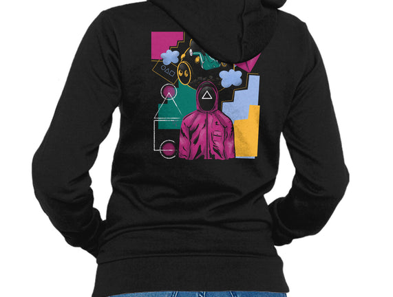 50% cotton, 50% polyester. Classic fit. Metal zipper and pouch pockets. Artwork printed on the back. Wash inside-out in cold water and hang on tumble dry on low heat to maximize the life of your sweatshirt.