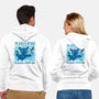 50% cotton, 50% polyester. Classic fit. Metal zipper and pouch pockets. Artwork printed on the back. Wash inside-out in cold water and hang on tumble dry on low heat to maximize the life of your sweatshirt.