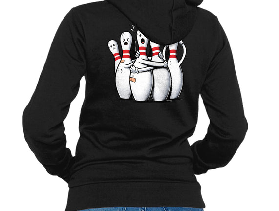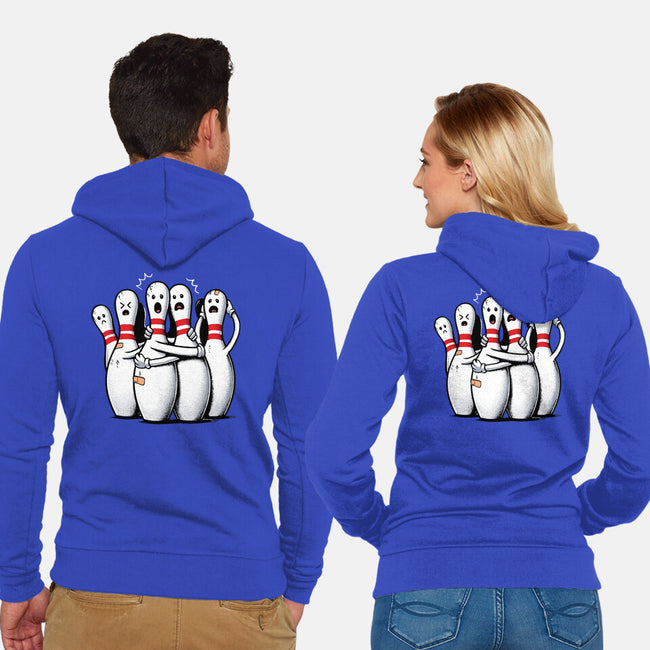 Panic At The Bowling Alley is a great Unisex Zip-Up Sweatshirt from our amazing collection of custom fandom inspired products. This product was designed by GoshWow, who is part of our exclusive pop-culture inspired artist community.