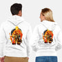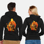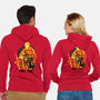 50% cotton, 50% polyester. Classic fit. Metal zipper and pouch pockets. Artwork printed on the back. Wash inside-out in cold water and hang on tumble dry on low heat to maximize the life of your sweatshirt.