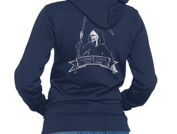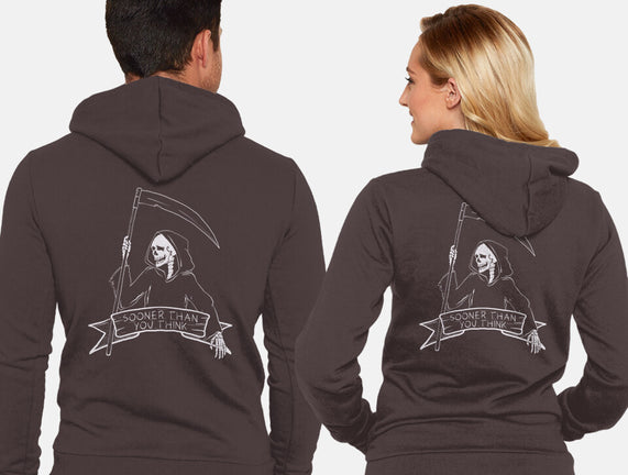 Sooner Than You Think is a great Unisex Zip-Up Sweatshirt from our amazing collection of custom fandom inspired products. This product was designed by Claudia, who is part of our exclusive pop-culture inspired artist community.