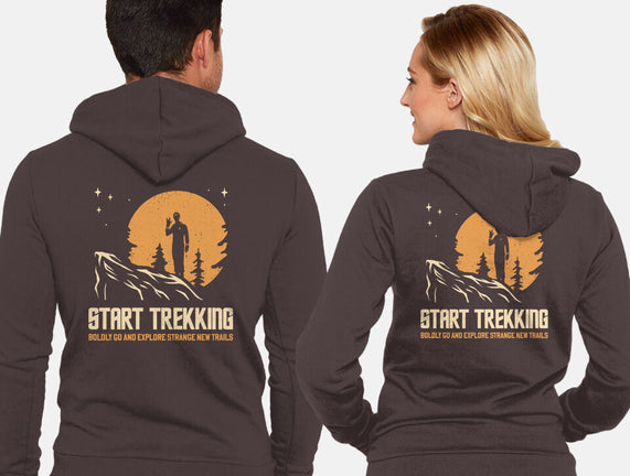 Start Trekking is a great Unisex Zip-Up Sweatshirt from our amazing collection of custom fandom inspired products. This product was designed by retrodivision, who is part of our exclusive pop-culture inspired artist community.