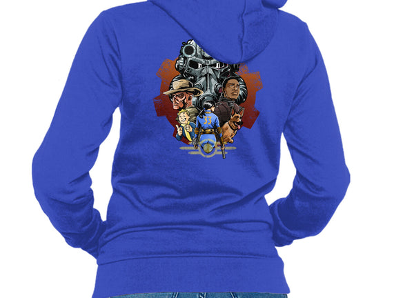 50% cotton, 50% polyester. Classic fit. Metal zipper and pouch pockets. Artwork printed on the back. Wash inside-out in cold water and hang on tumble dry on low heat to maximize the life of your sweatshirt.