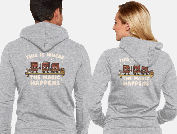 Where The Magic Happens is a great Unisex Zip-Up Sweatshirt from our amazing collection of custom fandom inspired products. This product was designed by Weird & Punderful, who is part of our exclusive pop-culture inspired artist community.
