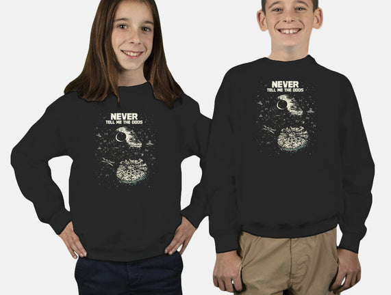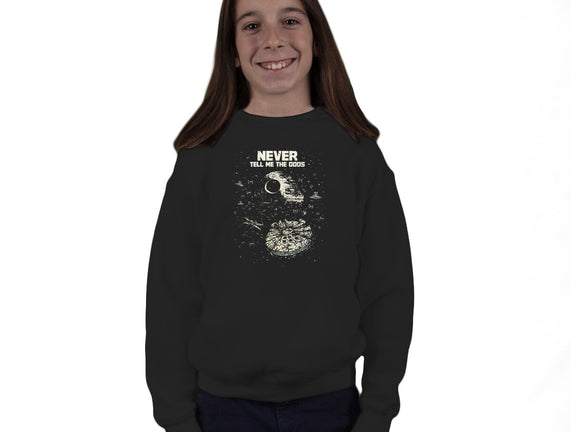 Never Tell Me The Odds is a great Youth Crew Neck Sweatshirt from our amazing collection of custom fandom inspired products. This product was designed by kg07, who is part of our exclusive pop-culture inspired artist community.