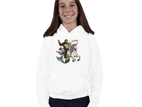 Just Believe is a great Youth Pullover Sweatshirt from our amazing collection of custom fandom inspired products. This product was designed by momma_gorilla, who is part of our exclusive pop-culture inspired artist community.