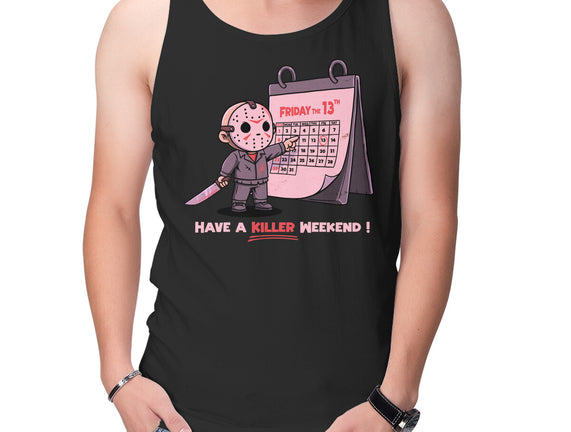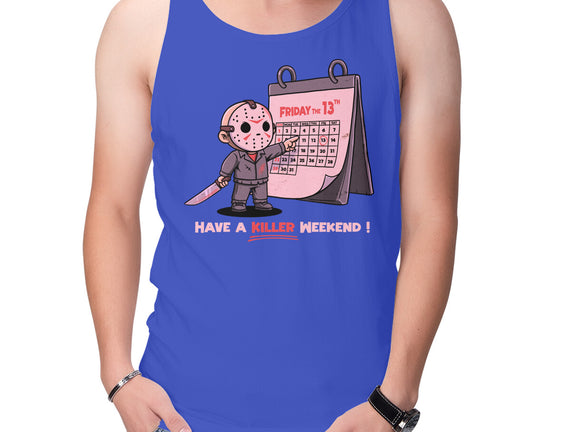 Killer Weekend is a great Unisex Basic Tank from our amazing collection of custom fandom inspired products. This product was designed by P1yu5h, who is part of our exclusive pop-culture inspired artist community.