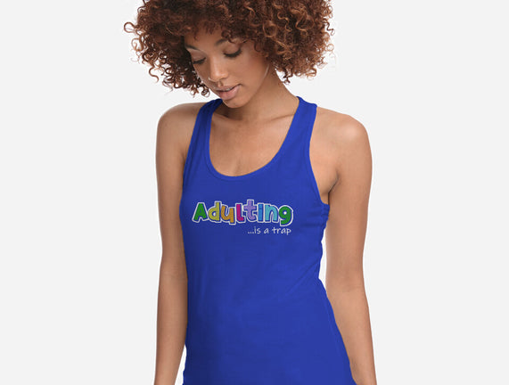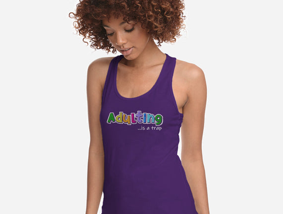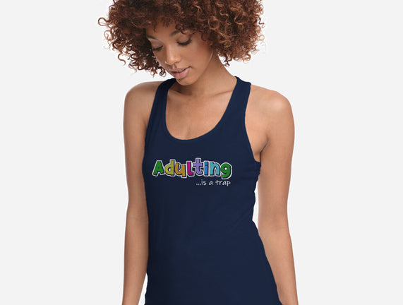 Adulting Is A Trap is a great Womens Racerback Tank from our amazing collection of custom fandom inspired products. This product was designed by NMdesign, who is part of our exclusive pop-culture inspired artist community.