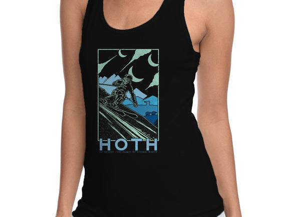 Hoth Ski Resort is a great Womens Racerback Tank from our amazing collection of custom fandom inspired products. This product was designed by sebasebi, who is part of our exclusive pop-culture inspired artist community.