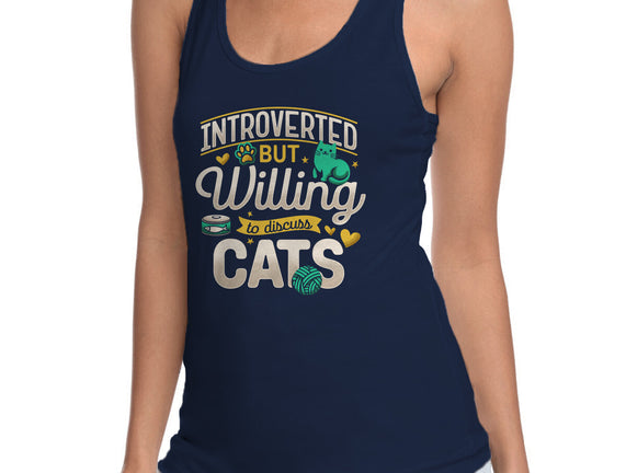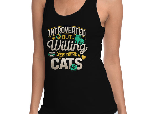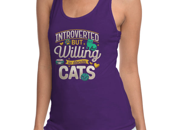 Introverted But Willing To Discuss Cats is a great Womens Racerback Tank from our amazing collection of custom fandom inspired products. This product was designed by Herk Up Tees, who is part of our exclusive pop-culture inspired artist community.