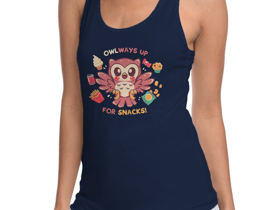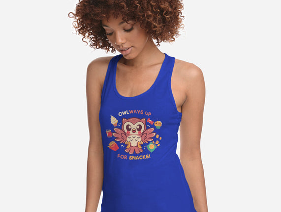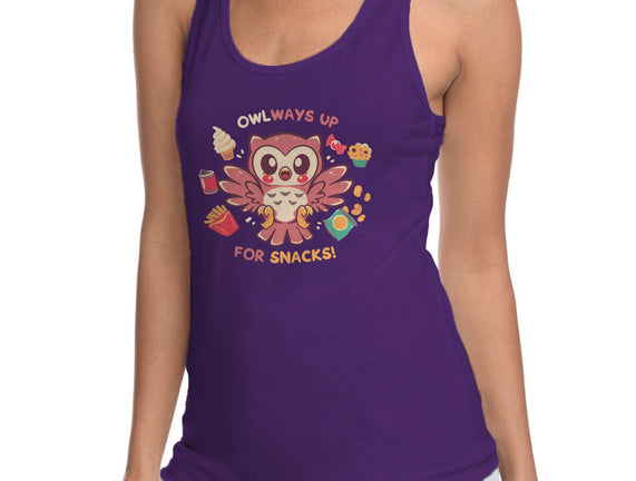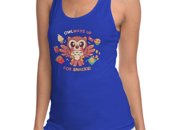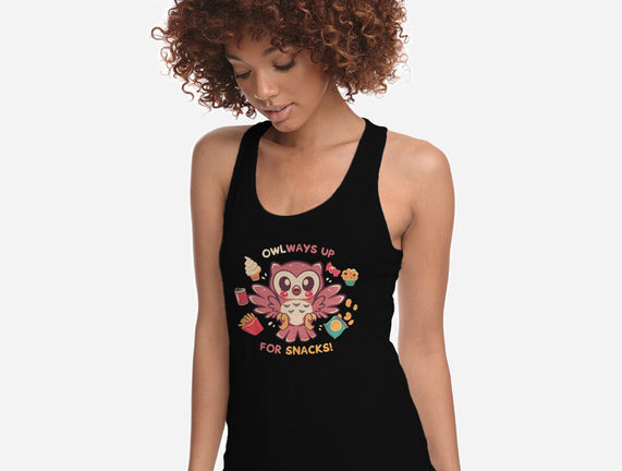 OWLways Up For Snacks is a great Womens Racerback Tank from our amazing collection of custom fandom inspired products. This product was designed by TechraNova, who is part of our exclusive pop-culture inspired artist community.