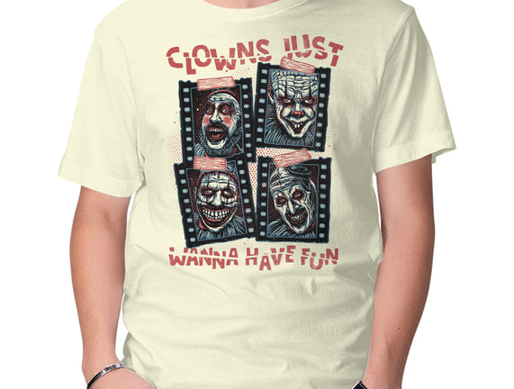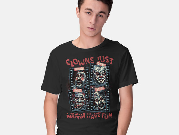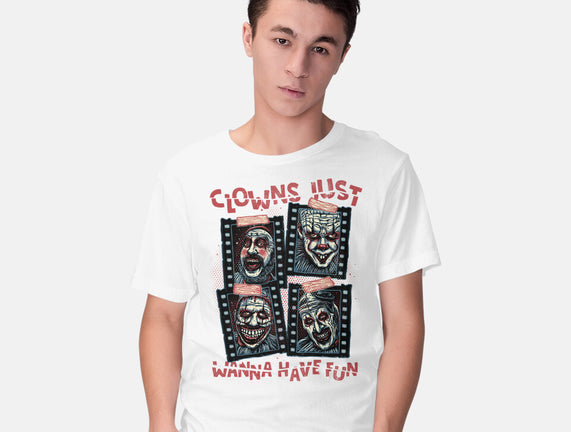 Clowns Just Wanna Have Fun is a great Mens Basic Tee from our amazing collection of custom fandom inspired products. This product was designed by glitchygorilla, who is part of our exclusive pop-culture inspired artist community.