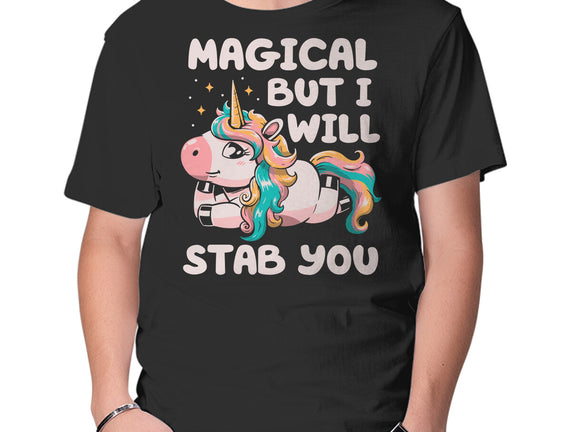 Magical But Will Stab You is a great Mens Basic Tee from our amazing collection of custom fandom inspired products. This product was designed by koalastudio, who is part of our exclusive pop-culture inspired artist community.