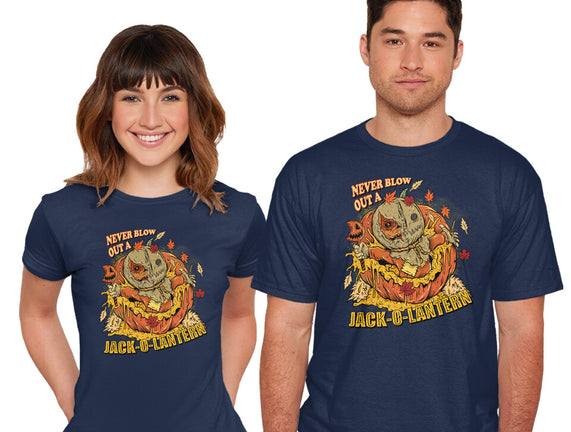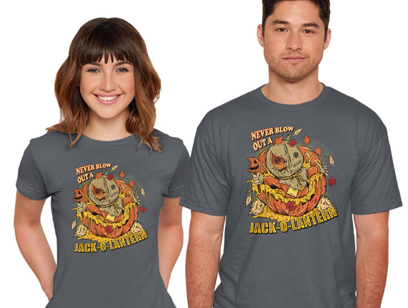Never Blow Out A Jack-O-Lantern is a great Mens Basic Tee from our amazing collection of custom fandom inspired products. This product was designed by Green Devil, who is part of our exclusive pop-culture inspired artist community.