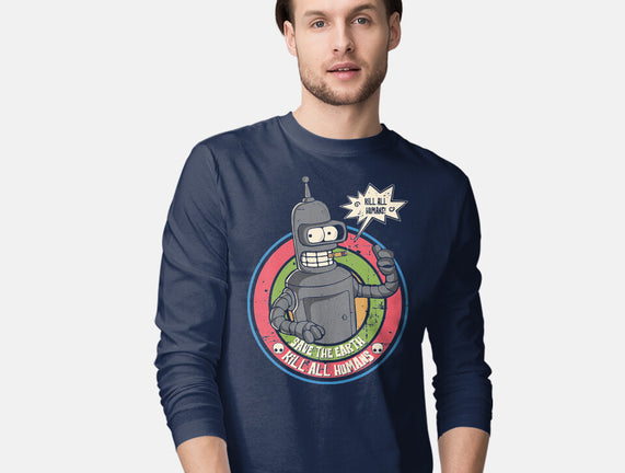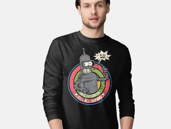 Save The Earth And Kill All Humans is a great Mens Long Sleeved Tee from our amazing collection of custom fandom inspired products. This product was designed by turborat14, who is part of our exclusive pop-culture inspired artist community.
