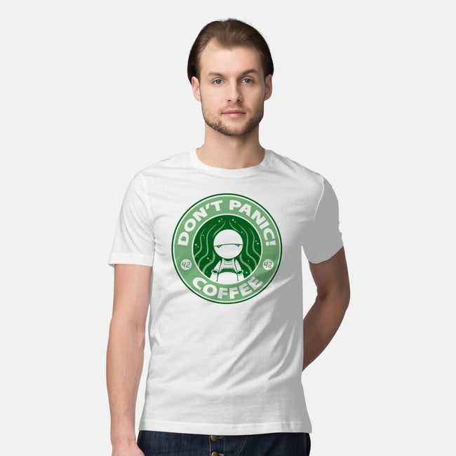 Don't Panic Coffee is a great Mens Premium Tee from our amazing collection of custom fandom inspired products. This product was designed by Umberto Vicente, who is part of our exclusive pop-culture inspired artist community.