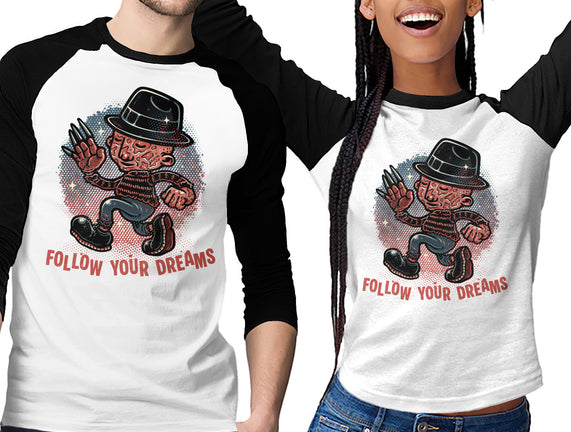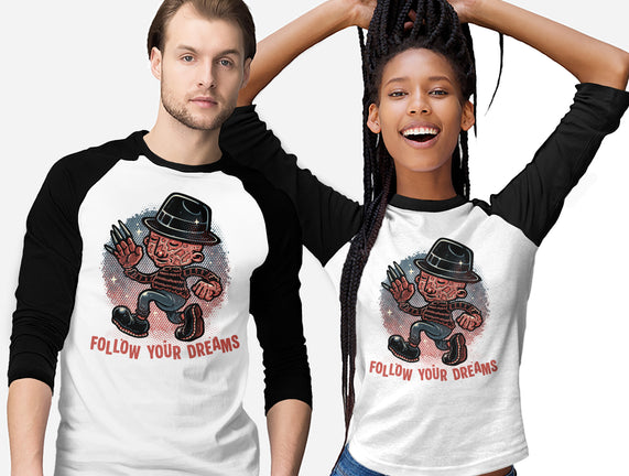 Follow Your Dreams Or Nightmares is a great Unisex Baseball Tee from our amazing collection of custom fandom inspired products. This product was designed by glitchygorilla, who is part of our exclusive pop-culture inspired artist community.