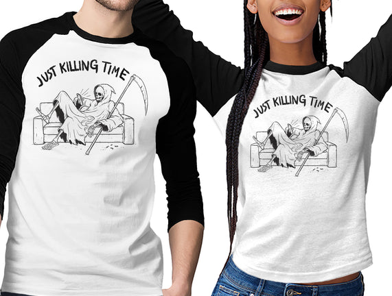 Just Killing Time is a great Unisex Baseball Tee from our amazing collection of custom fandom inspired products. This product was designed by Mike Koubou, who is part of our exclusive pop-culture inspired artist community.