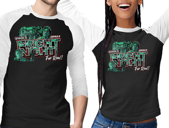Welcome To Fright Night is a great Unisex Baseball Tee from our amazing collection of custom fandom inspired products. This product was designed by goodidearyan, who is part of our exclusive pop-culture inspired artist community.