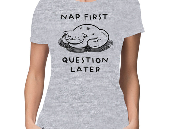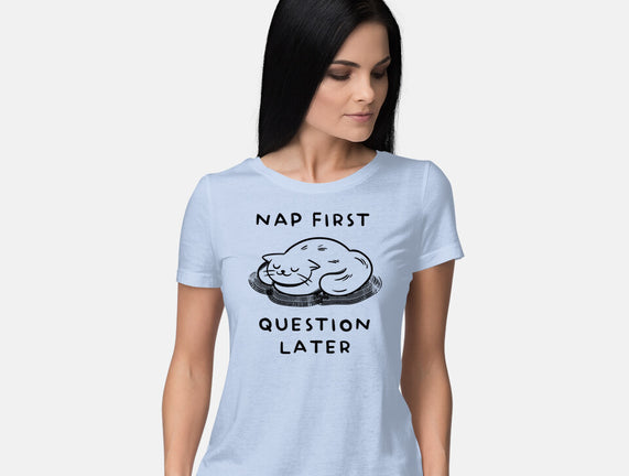 Nap First Question Later is a great Womens Basic Tee from our amazing collection of custom fandom inspired products. This product was designed by FunkVampire, who is part of our exclusive pop-culture inspired artist community.