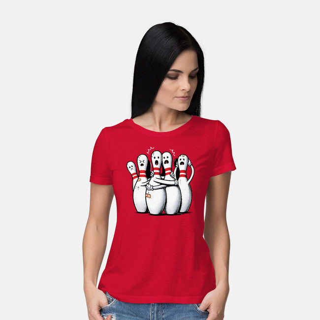 Panic At The Bowling Alley is a great Womens Basic Tee from our amazing collection of custom fandom inspired products. This product was designed by GoshWow, who is part of our exclusive pop-culture inspired artist community.