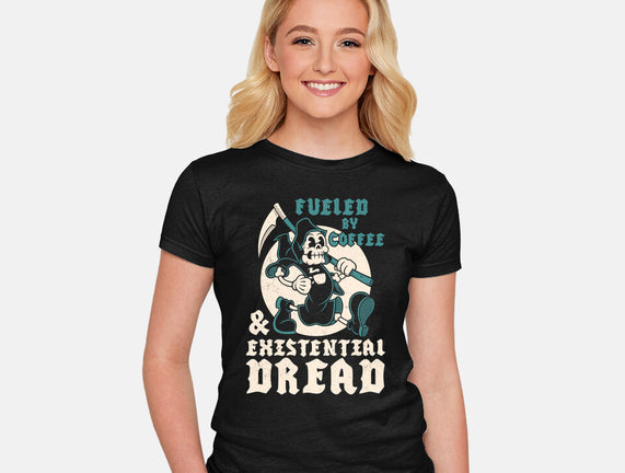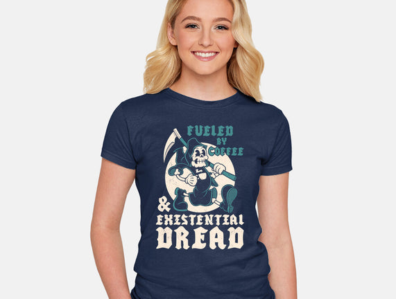 Fueled By Coffee And Existential Dread is a great Womens Fitted Tee from our amazing collection of custom fandom inspired products. This product was designed by Nemons, who is part of our exclusive pop-culture inspired artist community.