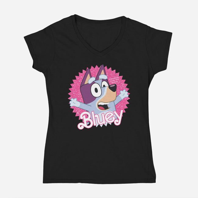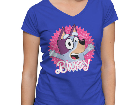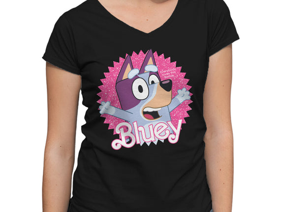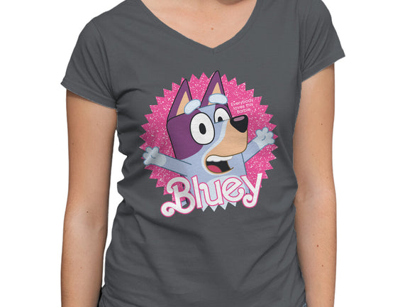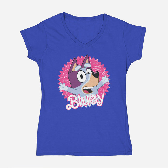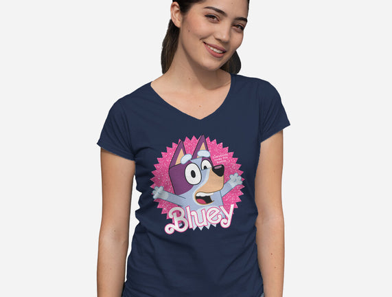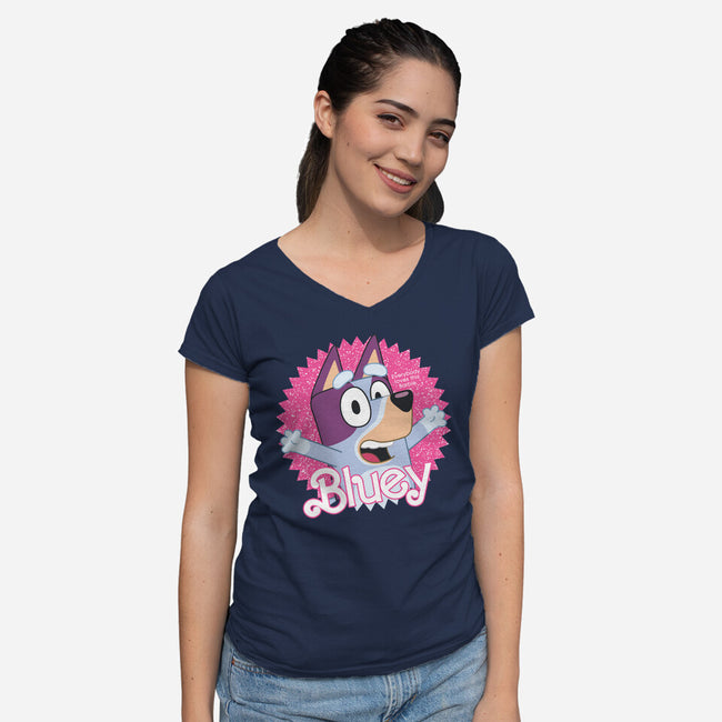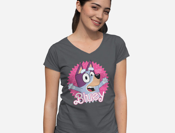 Bluey Barbie is a great Womens V-Neck Tee from our amazing collection of custom fandom inspired products. This product was designed by danielmorris1993, who is part of our exclusive pop-culture inspired artist community.