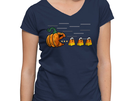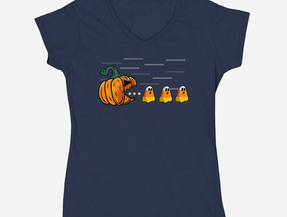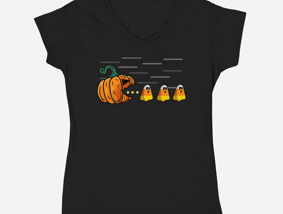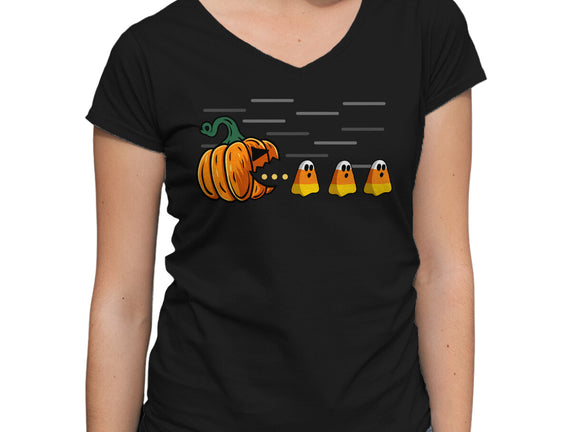 Candy Corn Hunter is a great Womens V-Neck Tee from our amazing collection of custom fandom inspired products. This product was designed by Agaena, who is part of our exclusive pop-culture inspired artist community.