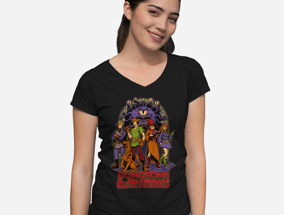 Dungeons And Mysteries is a great Womens V-Neck Tee from our amazing collection of custom fandom inspired products. This product was designed by Studio Mootant, who is part of our exclusive pop-culture inspired artist community.