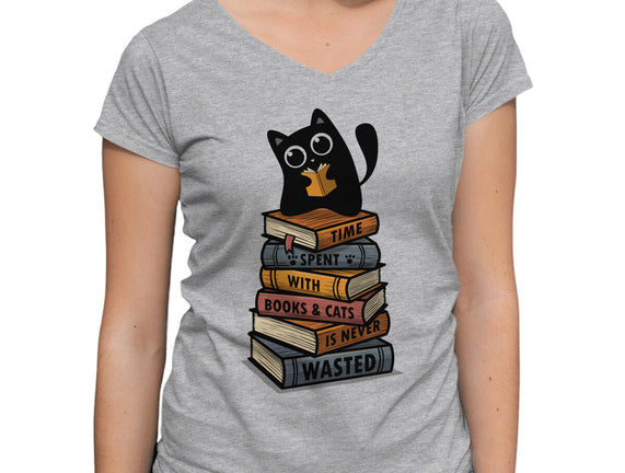 Time Spent With Books And Cats is a great Womens V-Neck Tee from our amazing collection of custom fandom inspired products. This product was designed by erion_designs, who is part of our exclusive pop-culture inspired artist community.