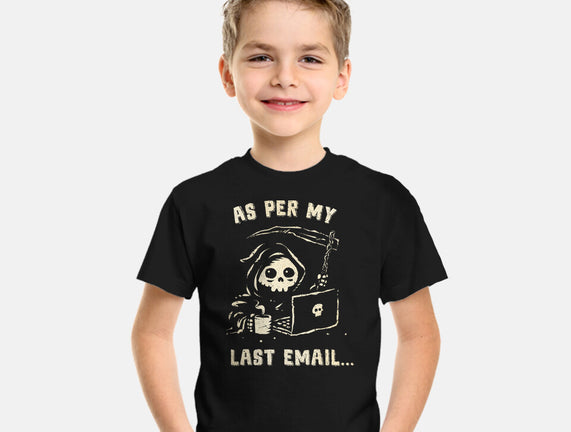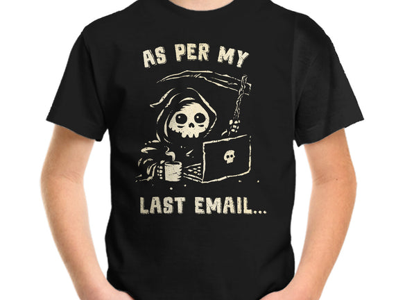 As Per My Last Email is a great Youth Basic Tee from our amazing collection of custom fandom inspired products. This product was designed by kg07, who is part of our exclusive pop-culture inspired artist community.