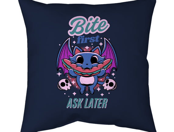 Bite First is a great None Removable Cover w Insert Throw Pillow from our amazing collection of custom fandom inspired products. This product was designed by FunkVampire, who is part of our exclusive pop-culture inspired artist community.