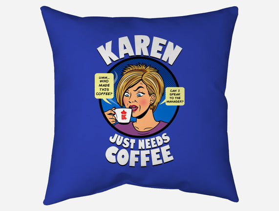 Karen Just Needs Coffee is a great None Removable Cover w Insert Throw Pillow from our amazing collection of custom fandom inspired products. This product was designed by Boggs Nicolas, who is part of our exclusive pop-culture inspired artist community.